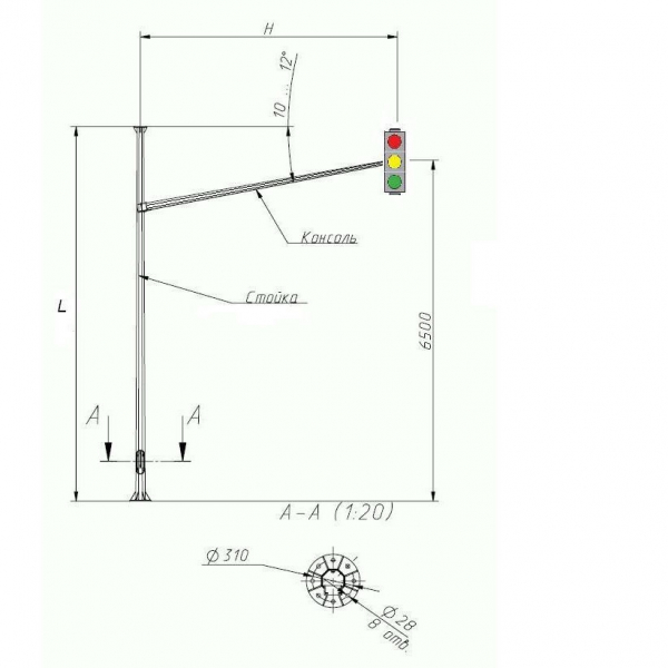 Опора ОГСГ-6,6-6,0 — это гранёная силовая светофорная конструкция. Используется для установки светофоров, возможно дополнительно установить дорожные знаки, указатели, видеофиксаторы.
