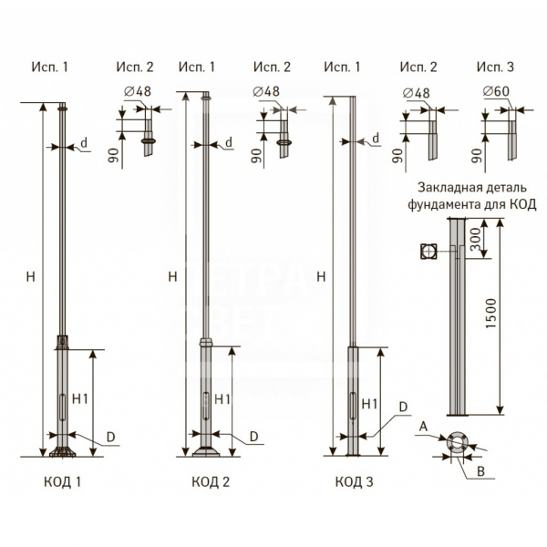 Опоры изготавливаются из трубного проката. В нижней части опоры имеется закрытый отсек (лючок) для установки автоматических выключателей и клеммных блоков. В опорах КОД возможно установка декоративных чугунных элементов.
