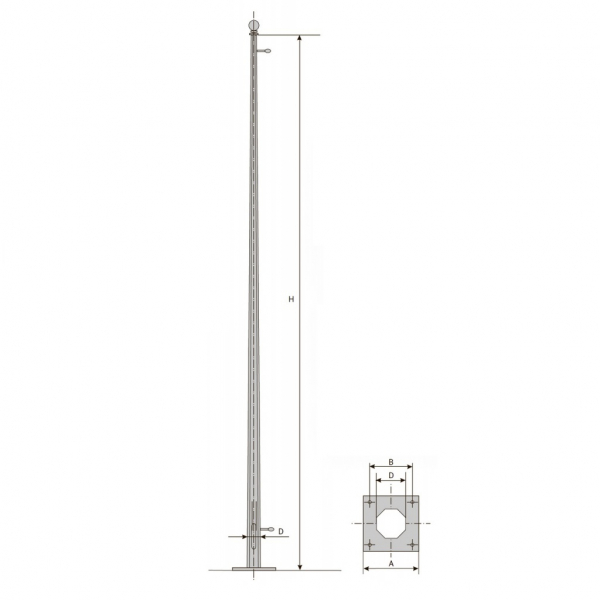 Флагшток ФЛ-7 (ф) — это металлическая конструкция, предназначена для крепления различных типов штандартов, флагов и полотен в верхней части, что позволяет их демонстрировать на автозаправочных станциях, спортивных сооружениях, городских площадях и перед торговыми или административными учреждениями. На АЗС эти конструкции также могут служить молниеотводами. К основным достоинствам флагштока относятся привлекательный внешний вид, долговечность и стойкость к коррозии.