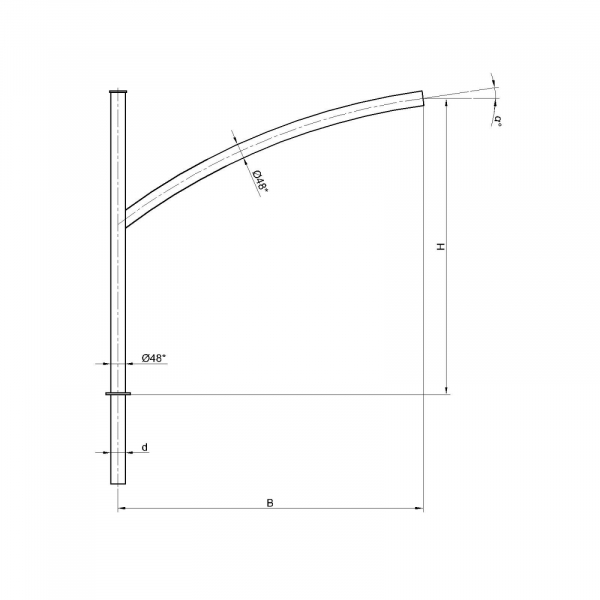 Однорожковые кронштейны К72-1,0-1,0-1-1 предназначен для крепления светильника на трубчатой опоре освещения. Завод опор освещения «Альдекс» изготавливает однорожковые консольные кронштейны из стального проката. Собственное производство позволяет выполнять изделия надлежащего качества и в кратчайшие сроки. Конструкция однорожковых кронштейнов К72-1,0-1,0-1-1. Конструкция консольных однорожковых кронштейнов К72-1,0-1,0-1-1 представляет собой гнутую металлическую трубу заданных размеров.