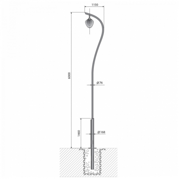 Опора освещения декоративная «Капля» лк б/ЗДФ представляет собой сварную конструкцию с присоединенным в верхней части креплением светильника (наружная часть опоры) и закладную деталь фундамента, выполненную из бесшовной горячекатаной трубы, увенчанной присоединительным фланцем, который служит опорной поверхностью для основного столба. Закладная деталь предварительно заливается армированным бетоном в земляном котловане.