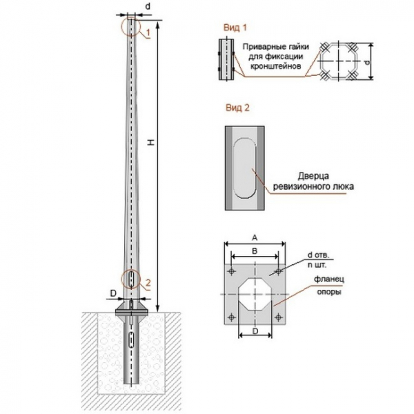 Опора имеет разную толщину стенок: внизу толще чем в верхней части, это уменьшает вес конструкции, что облегчает процесс транспортировки, снижает её себестоимость.