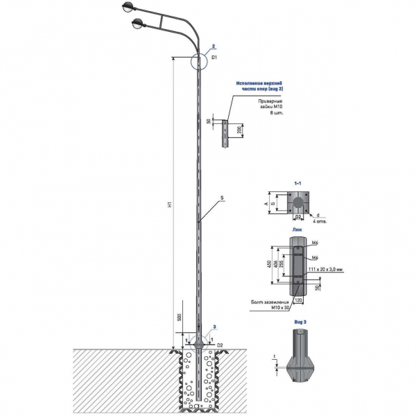 Опора НФК не предназначена для установки СИП. Внутри ствола располагается подвод электропитания, доступ к оборудованию происходит через ревизионный люк, расположенный в нижней части опоры.